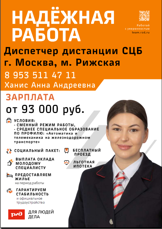 Почта для отправки резюме (справок-объективок) соискателей: shch2_ZaytsevaOV@msk.rzd