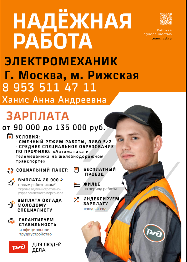 — Электромонтер СЦБ з/плата от 97 000 руб. (оклад 32 000 + от 100 % премия + 100 % зональная надбавка)