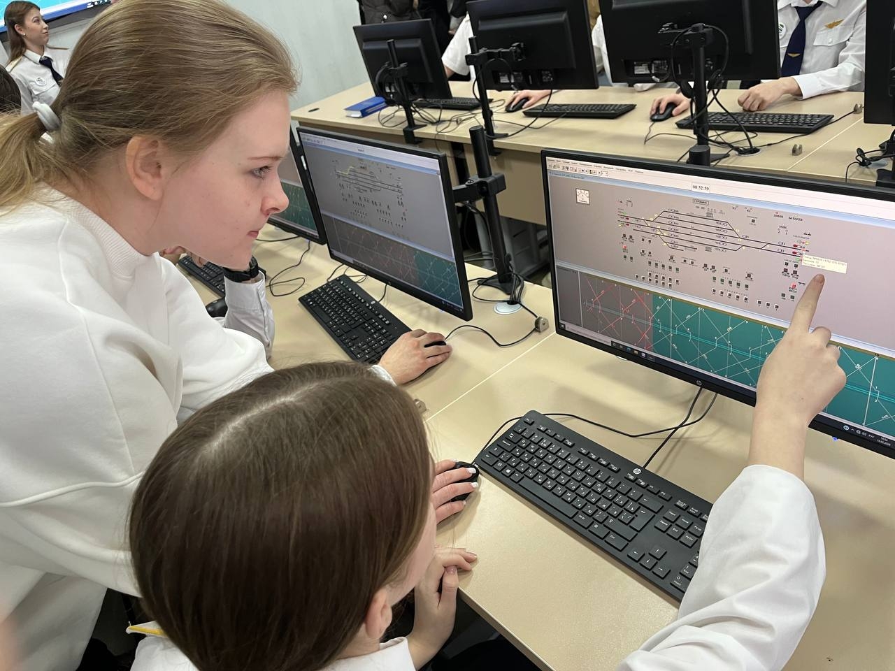 Практическое погружение в профессию. Гости разошлись по специализированным точкам, где преподаватели и студенты провели мастер-классы. Абитуриенты смогли увидеть реальное оборудование в действии, поработать на тренажёрах и лично пообщаться с наставниками и студентами.