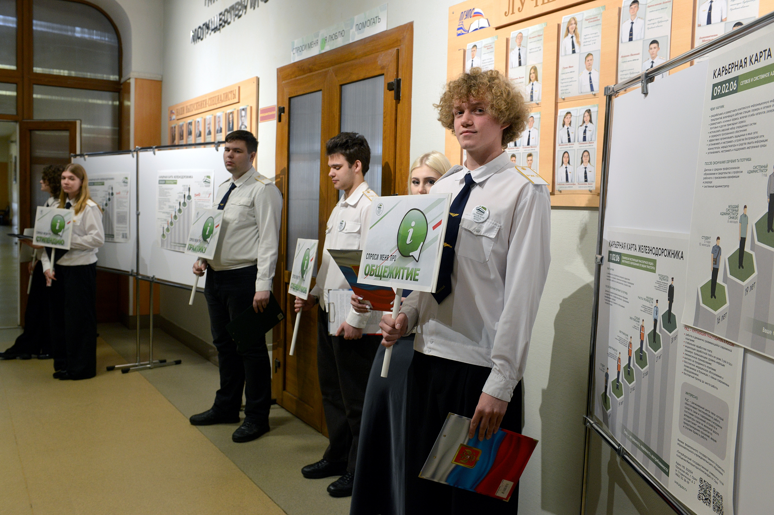 На площадках работали волонтёры-консультанты. Студенты в режиме «равный — равному» отвечали на вопросы абитуриентов: об условиях проживания в общежитии, стипендиальном обеспечении, досуге и учебных буднях.