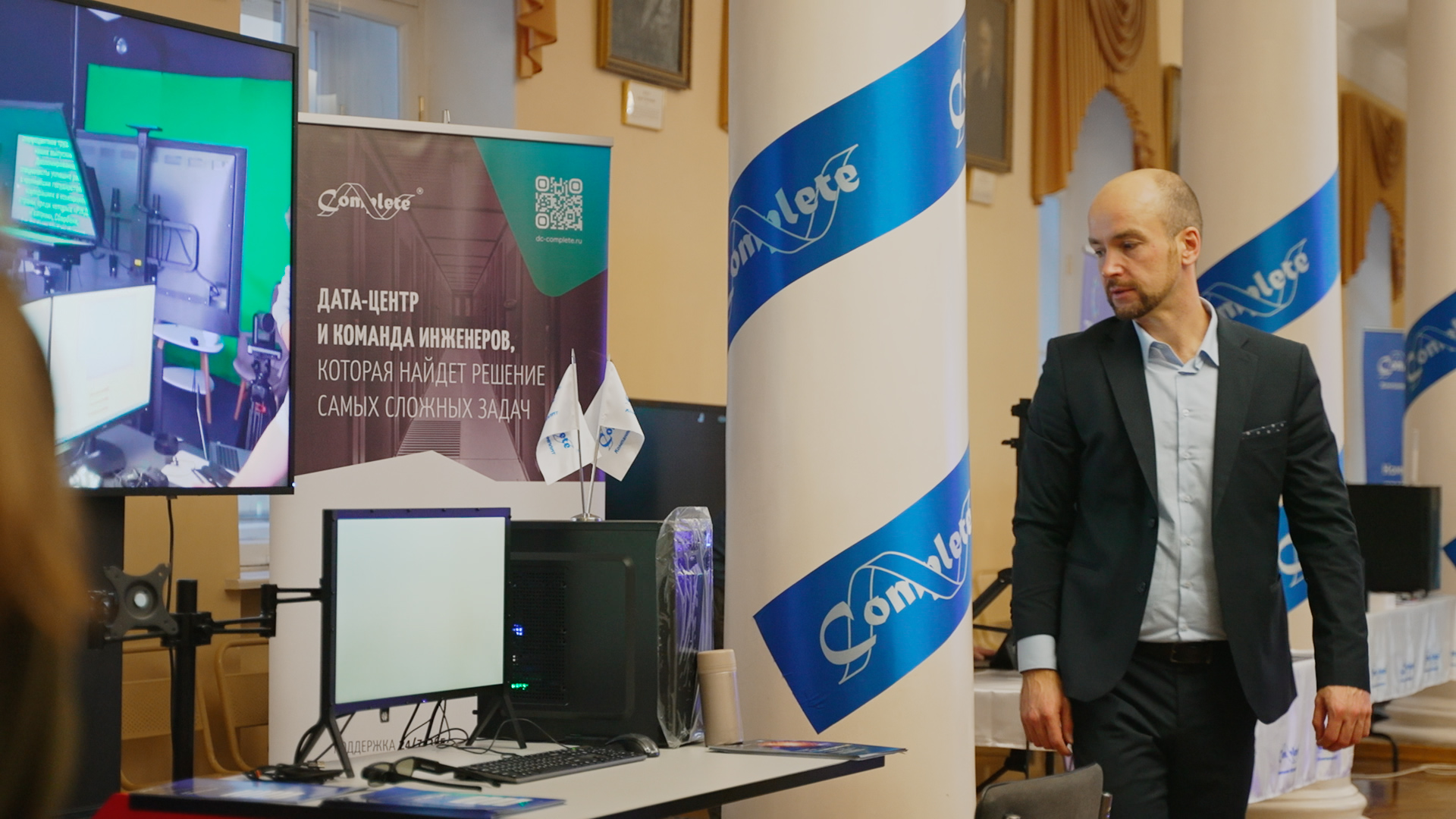 В Колонном зале университета развернулась впечатляющая выставка средств вычислительной техники и информационных технологий, где были представлены передовые решения.
